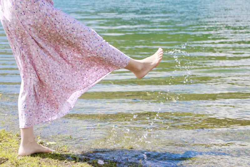 在微风的怀抱中,冶勒湖熨帖又安宁