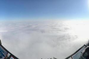 俯视时看到的如海涛起伏的云,海天高远、苍茫空阔之境
