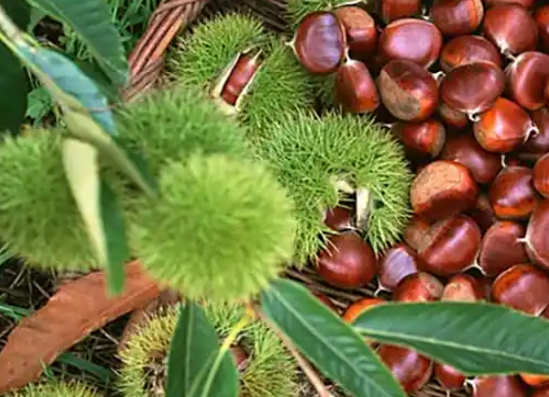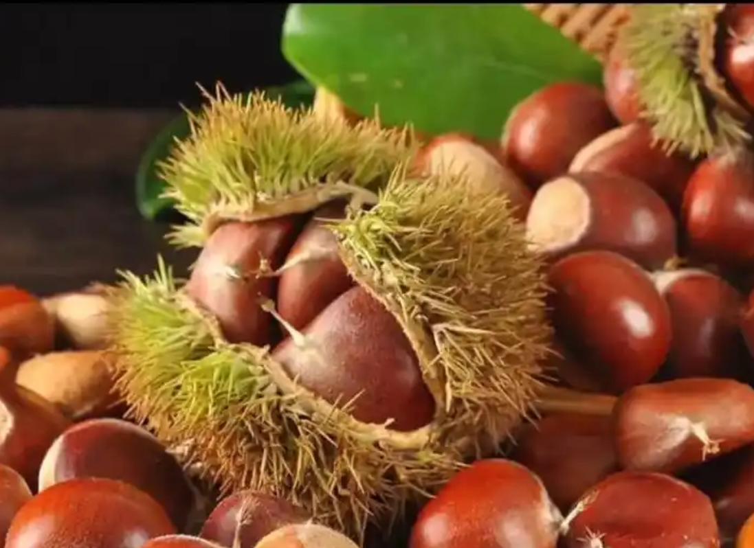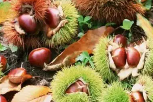 野生板栗肉细腻香甜,富含有优质蛋白质、优质脂肪酸,以及多种维生素和矿物质等多种营养成分,有健脾胃、益气、补肾、壮腰、强筋、止血和消肿强心的功用,并有“干果之王”的美称。