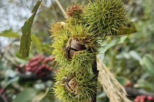 这里气候宜人,土质肥沃,所以特别适合野生板栗生长,大片大片的野生板栗特别吸引松鼠,运气好就可以捡到野生松鼠搬运时掉在地下的野生板栗。
