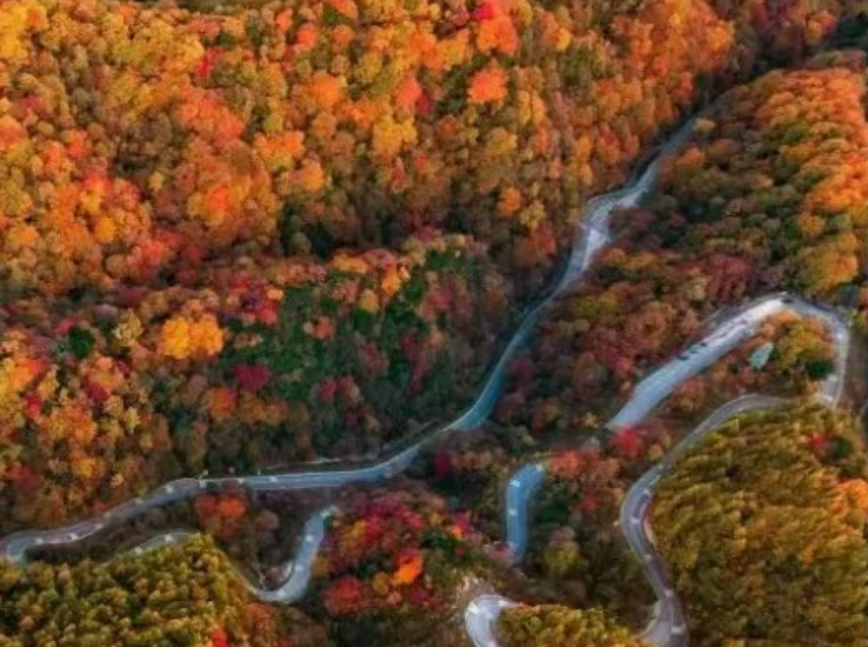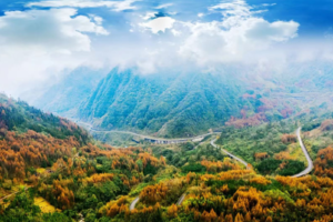 最佳的徒步路线就是琉璃坝小环线,徒步穿越原始森林,达到干五里坪,俯瞰整个琉璃坝,杉树、乔木、灌木、红叶错落有致地分布在蜿蜒山坡上,万叶斑斓,层林尽染,长空与浓妆的大山相映成趣,十分的壮观,仿佛置身于童话之中。