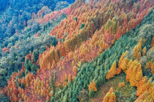 金凤山的彩林季节,银杏、黄杉、红叶一样不落,红的热烈鲜艳,黄的绚丽多彩,因为海拔比藏区低一点,所以11月中旬至下旬,正是观赏的最佳季节!