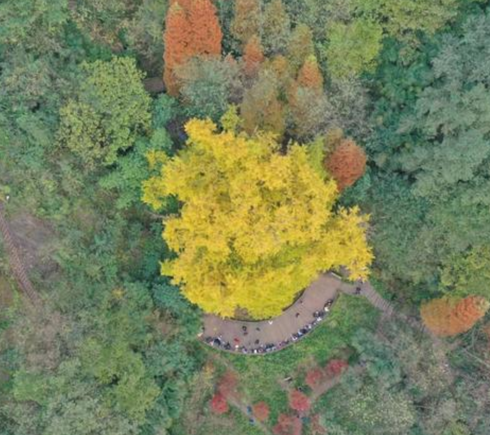 在葛仙山风景区有很多颗高大的银杏树,最大的一颗银杏的树龄据说有一千多年,夏天是树茂叶盛,秋天则是金黄色一片,而十月的秋天,则是青黄交接的时候,展现了不一样美丽,是秋天摄影最佳选择之一。