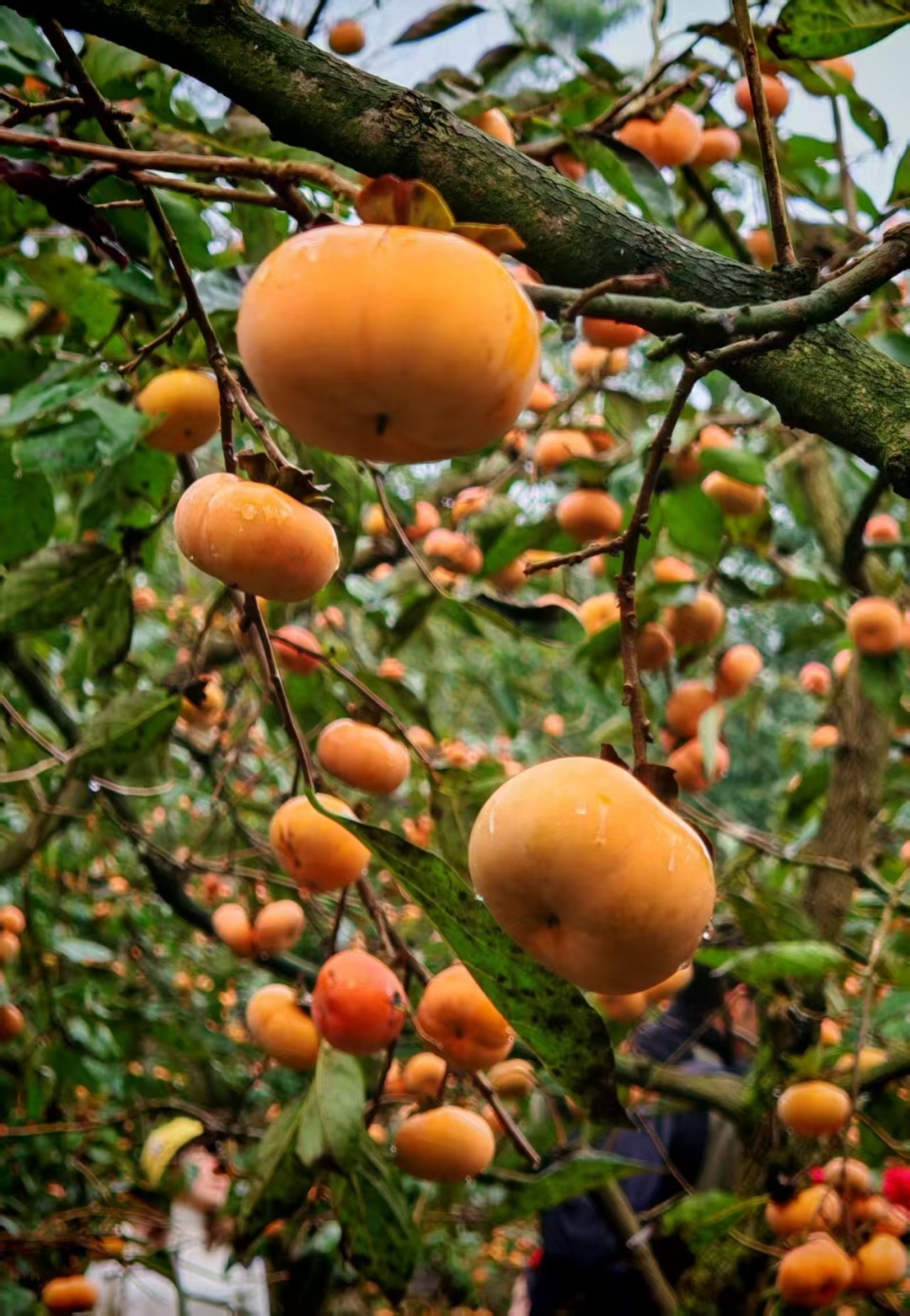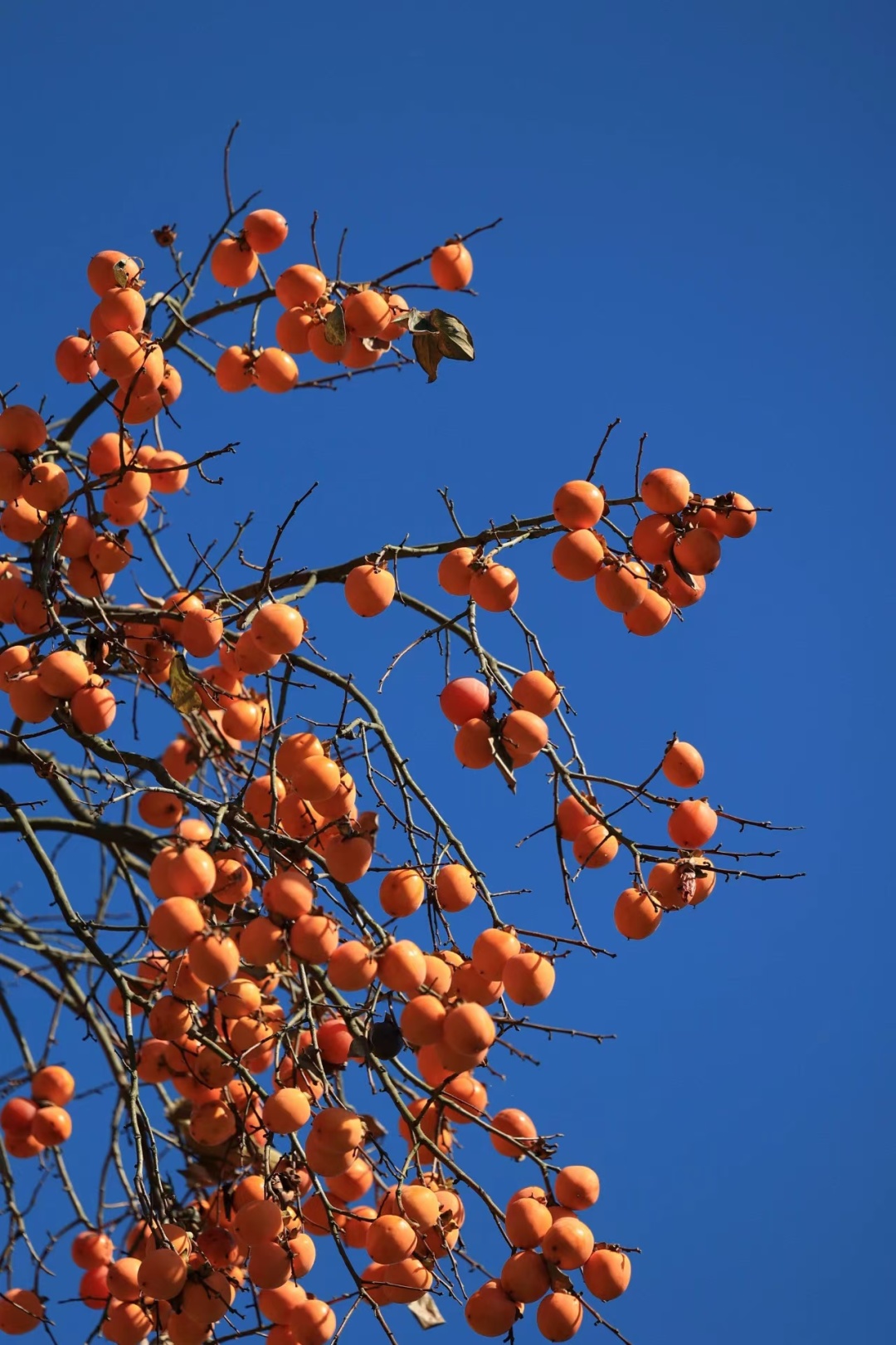 当红彤彤的柿子挂满枝头,真当得起一句“硕果累累”,喜庆的红灯笼是大自然的馈赠,每一颗柿子都颜色艳丽,娇艳欲滴,咬上一口必定满口留香,软糯的果肉在舌尖打转,蜜汁滑入喉咙,超级满足。