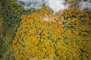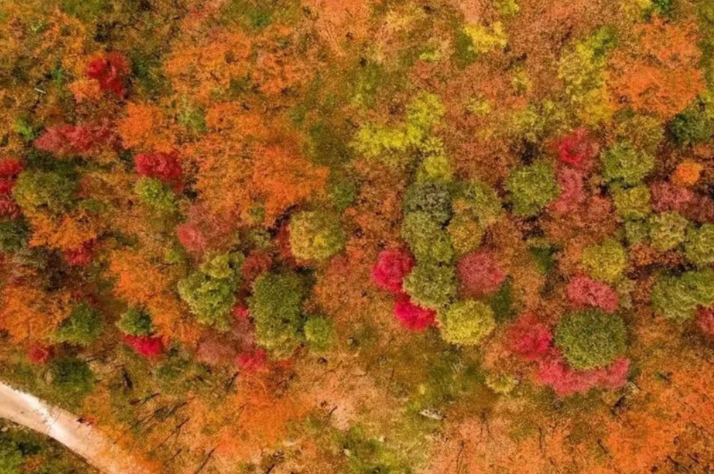 登山山顶,可以俯瞰一幅幅彩色花卷!带上无人机,可以拍摄翻腾的云海,美丽的彩林波浪!