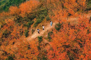 徒步在山间,如遇晴天,能够享受阳光、红色、黄色、树荫的光影世界,如遇小雨天气,则能享受烟雾萦绕彩林的光雾世界,每一处都是美丽的照片。