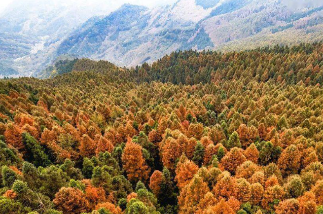 2、 黄杉、彩林正是五颜六色的时候,风景最佳时节。