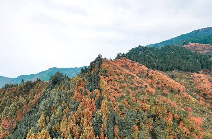 金凤山位于崇州三郎镇和街子古镇,相连大坪村和白云沟,这里海拔范围为1000-1800,森林覆盖率高植被丰富,一年四季都有不同的风景,到了秋末初冬季节的时候,就是彩林季节!
