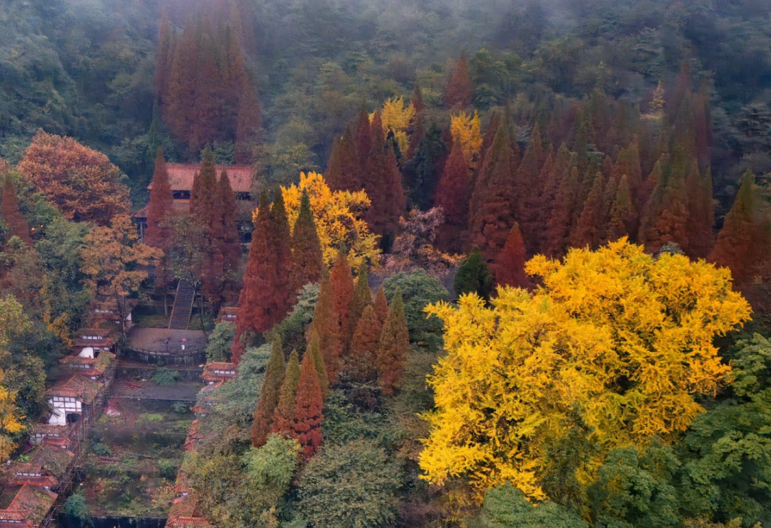 初冬的灵岩寺,美爆了!徒步都江堰灵岩寺,摄影美丽银杏,观赏黄色的杉树林,打卡古寺古街,登顶俯瞰都江堰全景,还能轻松领奖牌!