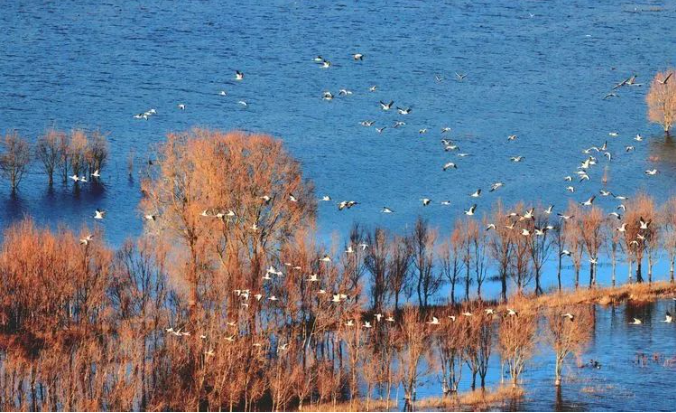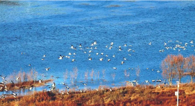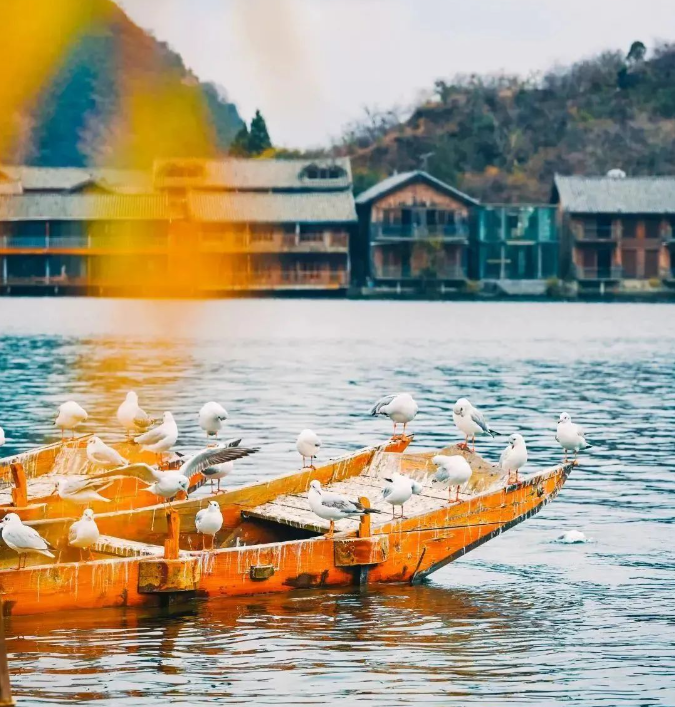 碧波蓝天下,候鸟成群飞过万河归来,也希望你是为泸沽湖而来