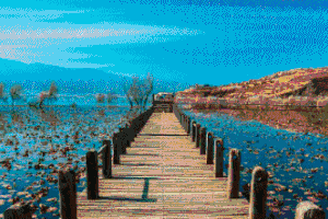 还有蓝蓝的天空和暖洋洋的阳光连绵的群山下,一汪不见边际的湖水漫洒着曲曲折折的水岸以动人的身姿,在金阳的照耀下闪动着醉人的身姿