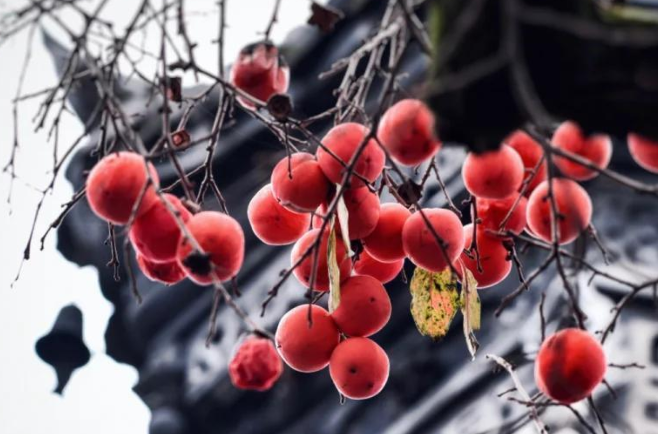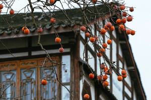 每年的初冬季节,街子古镇就成为了热门打卡点,因为大片的柿子高挂枝头,红彤彤的果实和古建筑同框,成为了街子古镇的标志性景观,所以引来了大量的游客观赏和摄影。