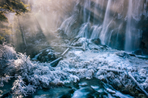 诺日朗瀑布景色四季变换,昼夜迥异。