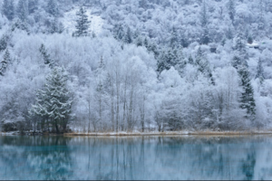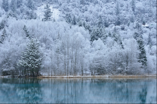 湖面平静而宽阔,老人柏像个忠诚的管家,静默地守候