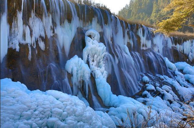 春之九寨,冰雪消融,山花烂漫;夏之九寨,苍翠欲滴,杜鹃红艳;秋之九寨,绚烂多彩,流光闪耀;冬之九寨,银装素裹,白雪掩映。