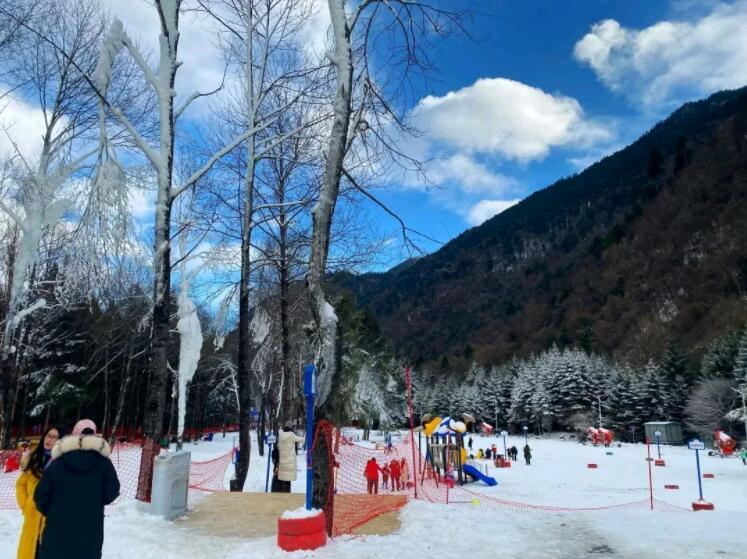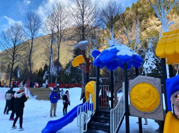 抬头即见雪山之巅,运动体验极其美好。景区戏雪区以瓢虫主题展现,并且是以闯关模式打造的戏雪乐园。