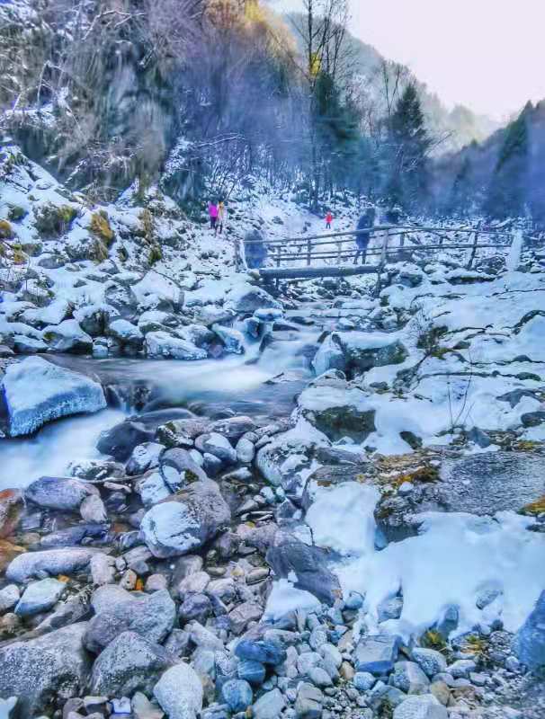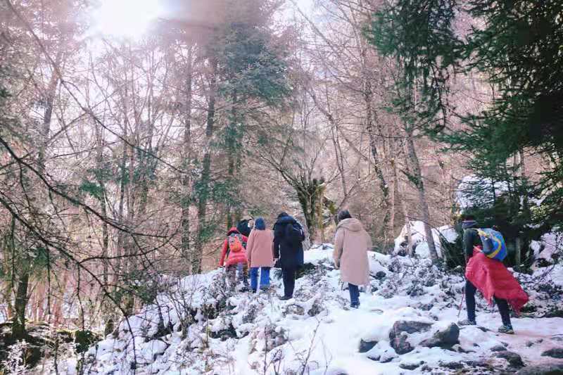 早上准时从集合点出发,沿蓉昌高速、317国道转薛孟路,车上领队组织大家相互介绍认识,中午预计在上孟乡午餐。午餐过后前往我们的徒步起点。领队带领大家热身后开始下午的厄尔娜沟魔幻冰雪森林红石徒步活动,穿过原始森林,越过潺潺小溪,最后到达我们的目的地厄尔娜瀑布,瀑布这个时候已经结冰,相当漂亮,打卡拍照。下午15:30开始原返,预计17:30到达中转车乘车点,乘坐中转车返回住宿酒店。约伴一起品味当地特色的铁板烧烤。