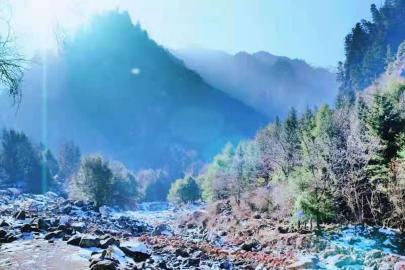 这里森林覆盖面积高达95%,山清水秀,树木繁多,林海浩瀚。这里气候清凉,有终年不化的雪山,有成群的牛羊,有浩瀚的林海,有神奇的红石滩,有清澈宁静的溪水,还有热情好客的藏民。