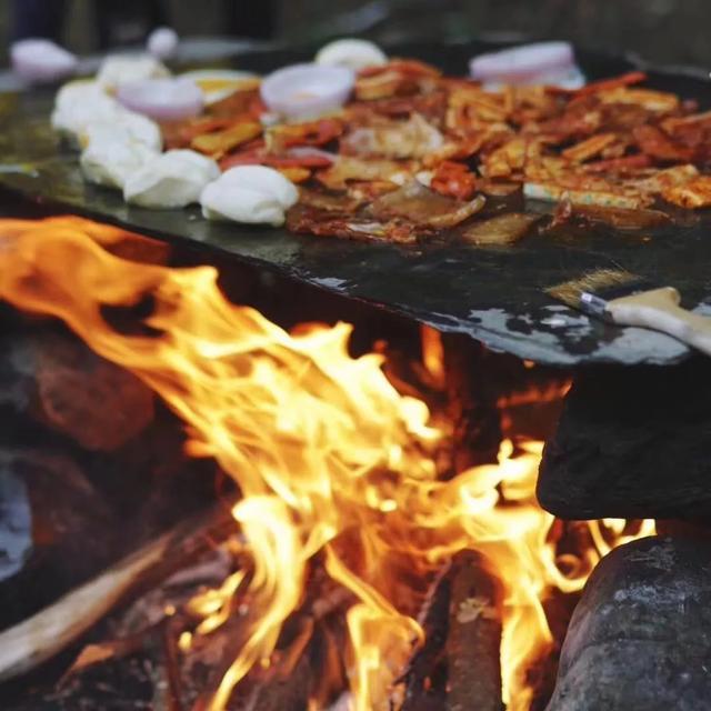 冰与火之歌,除了美景,美食自然少不了。孟屯河谷属于少数民族地区,这里除了藏式火锅外,还有一大特色——石板烧烤,在柴火的烘烤之下,肉食与蔬菜在石板之上滋滋作响,色香味俱全。