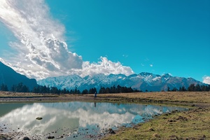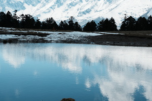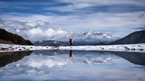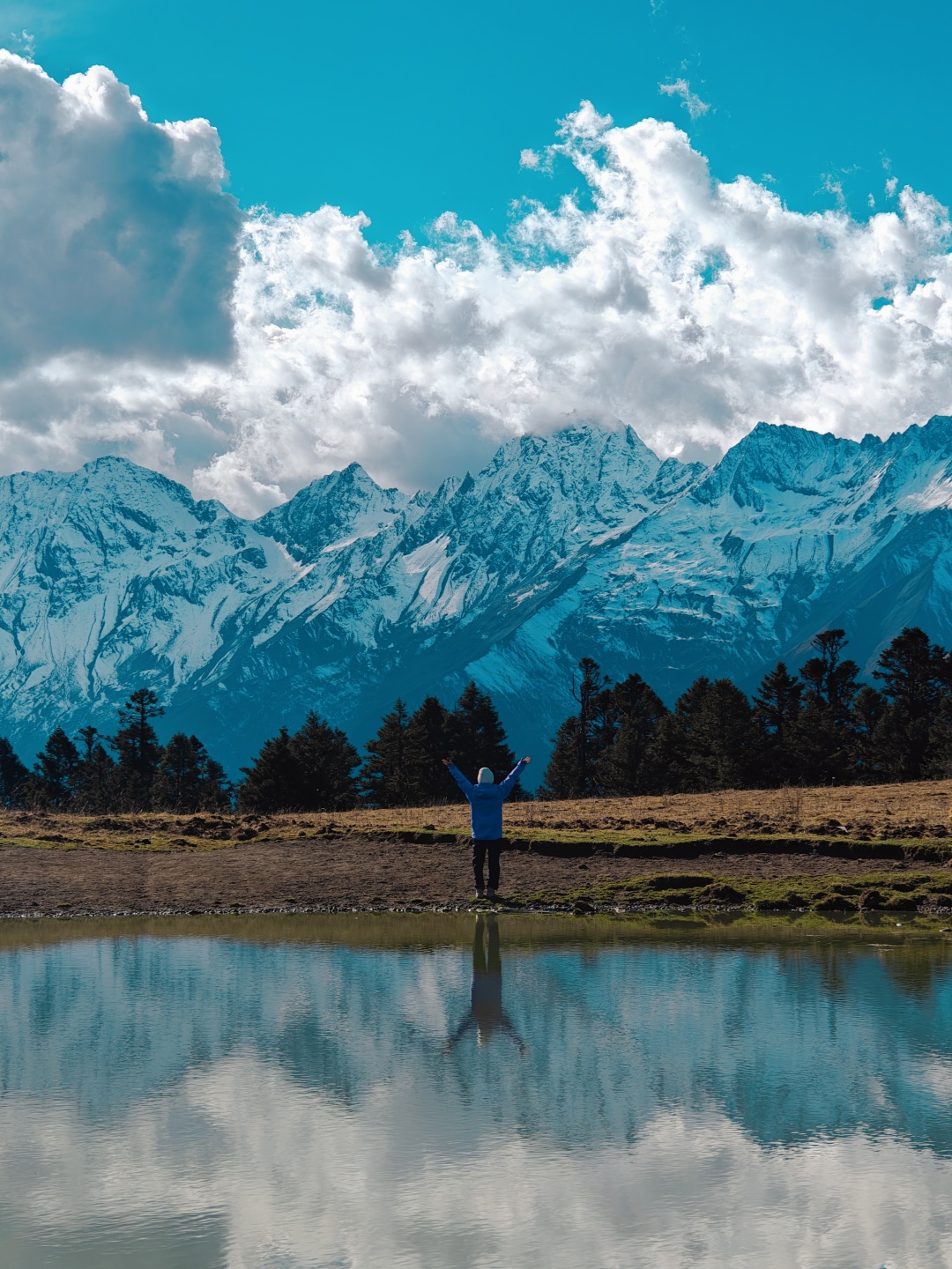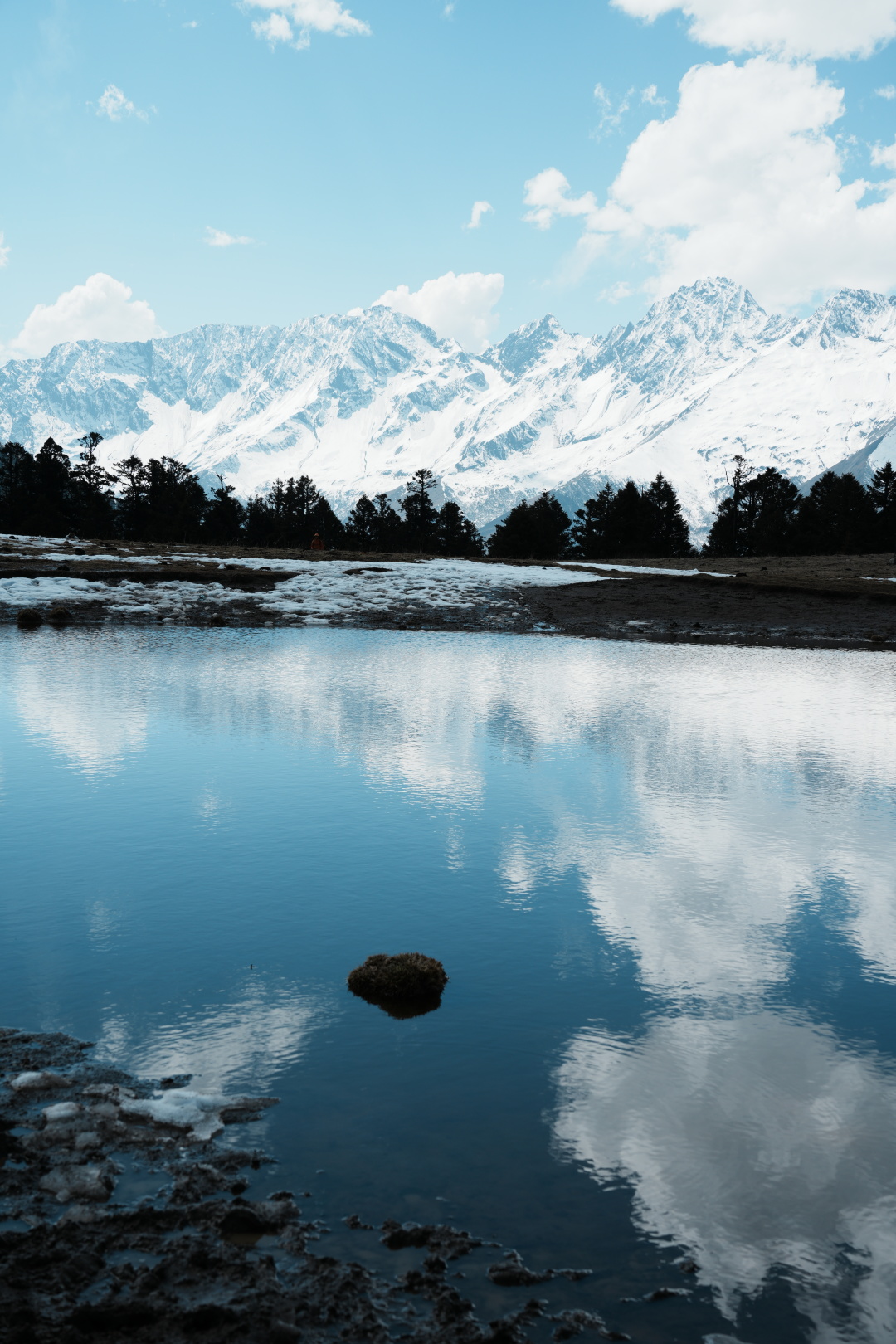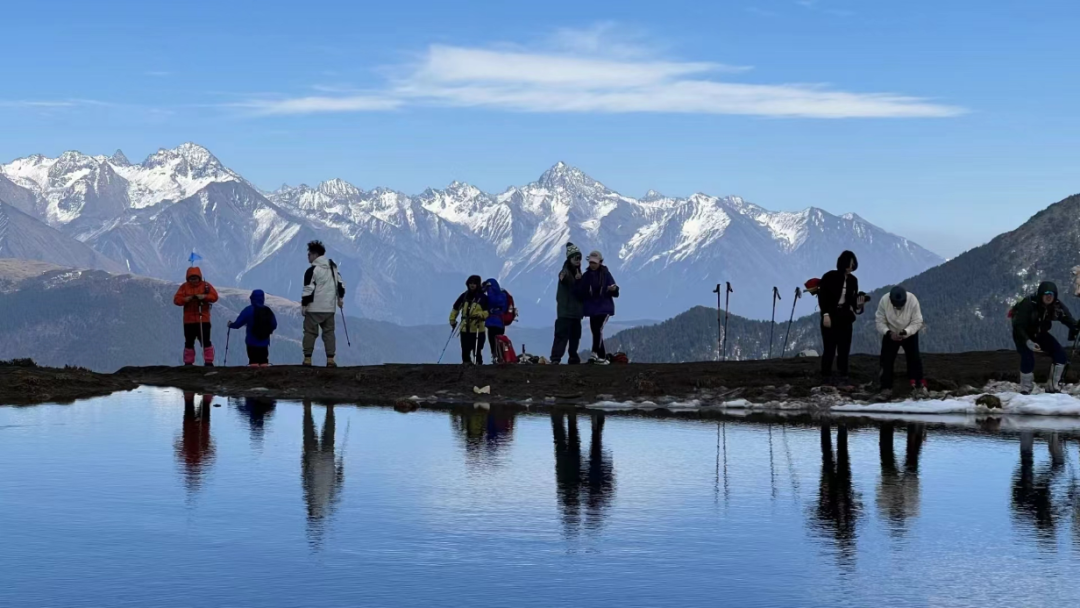 一种收获的喜悦,盈于心间,前行的小水凼,盛放着看似触手可及的雪山。大自然的创作,眼睛初见的震撼完全不能用这照片来形容,只有身处才能感受到那种震撼的魅力。