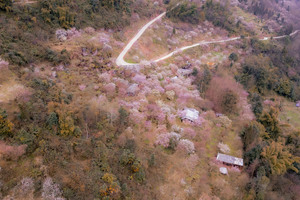 三元场环线约7公里,背靠西岭雪山,从山谷往山顶缓慢上升,沿途是石板路、乡间小道、树林地,徒步两旁都是乌梅树,放眼望去都是乌梅花,徒步路线不长,所以特别适合一边徒步,一边拍照的徒步设计。