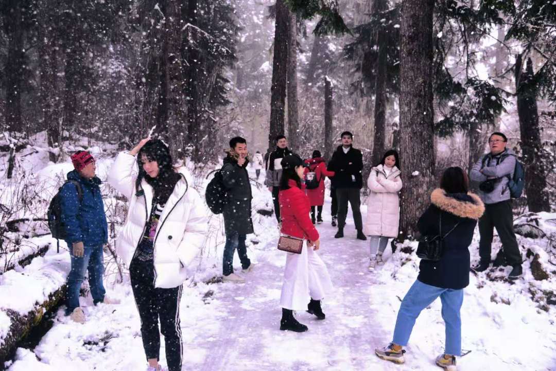 重峦叠嶂的群山和静逸的原始森林此时银装素裹,