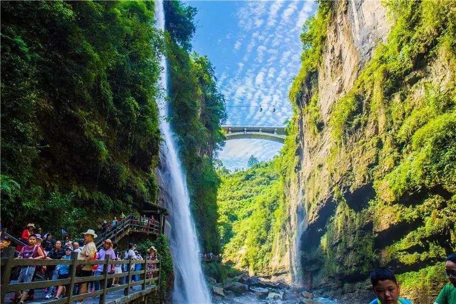 早上起床后前往大峡谷景区、景区先后被评为国家AAAAA级旅游景区、国家地质公园,灵秀湖北的十大旅游名片之一。神秘险峻的恩施大峡谷,拥有【清江升白云】、【绝壁环峰丛】、【天桥连洞群】、【暗河接飞瀑】、【天坑配地缝】五大奇观。恩施大峡谷已开放七星寨和云龙地缝两大核心景区,总面积35.2平方千米,天坑、地缝、绝壁、峰丛、岩柱群、溶洞、暗河等地质景观一应俱全,被称为“喀斯特地形地貌天然博物馆”这一天足够的时间游玩景区,晚上继续入住景区外酒店