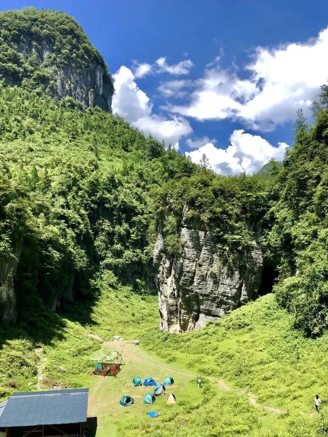 好汉坡的下方是典型的天坑地貌,四周百米绝壁,中间却是生机盎然的密林。初到谷底的人,如果没有人带路,一定会感到崩溃,似乎只有一个深不见底的洞穴是唯一的出路,其实绝壁之上还有一个叫一线天的地方可以带你逃出天生,这就是古河床的奇妙所在。