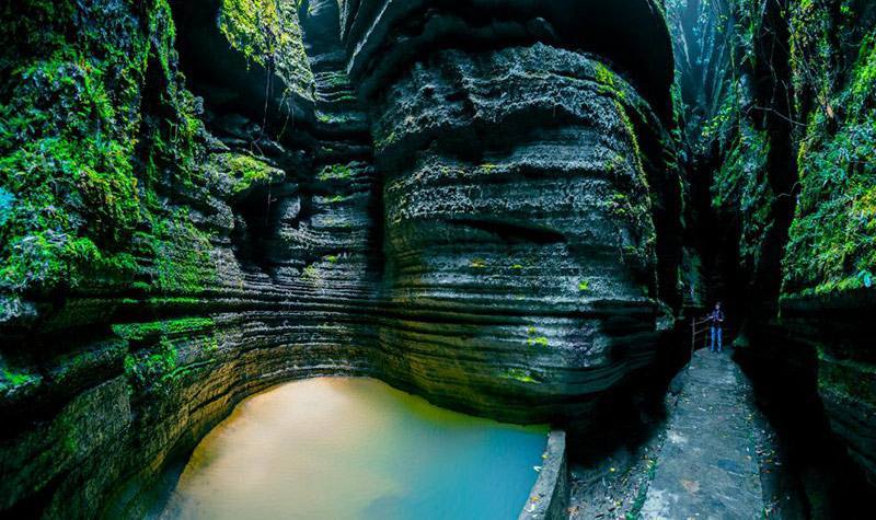 这是条神秘而奇异的地缝,在中国的地缝中它并非最深最长,却蕴藏着诸多独特的奇异景观:世所罕见的U形地缝、形态各异的瀑布群、多姿多彩的喀斯特象形石。