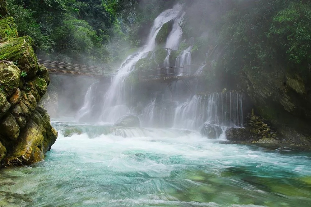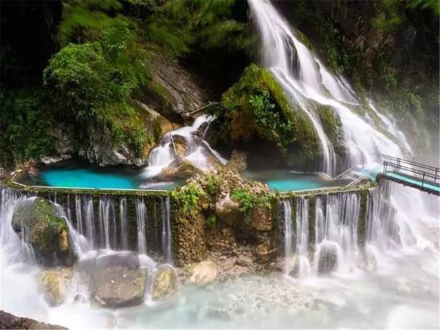 让人念念不忘的,绝对要数那有着世界第一之称的螺髻山九十九里温泉瀑布。螺髻九十九里瀑布温泉出水口在半空中,泉水涌出后沿崖壁下泻形成宽19米,高31米的四叠瀑布。