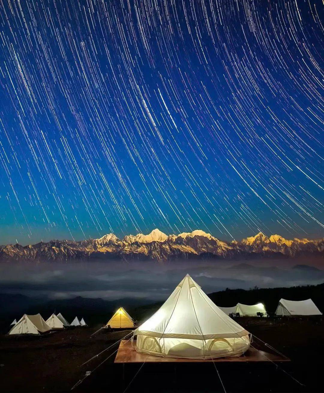 早上出发,车上休息补充睡眠养精蓄锐,浦江服务区停靠休息后领队讲解行程、注意事项、组织大家互动破冰。预计中午在石棉午餐,餐后出发前往王岗坪景区,换乘景区观光车再做观光索道上到山王岗坪,这里是环贡嘎山景观最好的景平台,可观赏到海拔在 6000m 以上的雪山 45 座,5000m 以上的百余座,站在王岗坪上观贡嘎,如同在云海之上,展开了一幅蜀山画卷,堪称视觉盛宴。王岗坪平均海拔在 2600m 以上,四季可观日出云海、星空云瀑、原始森林,站在广阔的台地上,仿佛身在云端。N多个摄影机位,随便摆造型!适时前往营地休息,坐等傍晚时分的日照金山、晚霞,从日落到漫天星辰、在王岗坪,看繁星、感受生命浩瀚时刻!