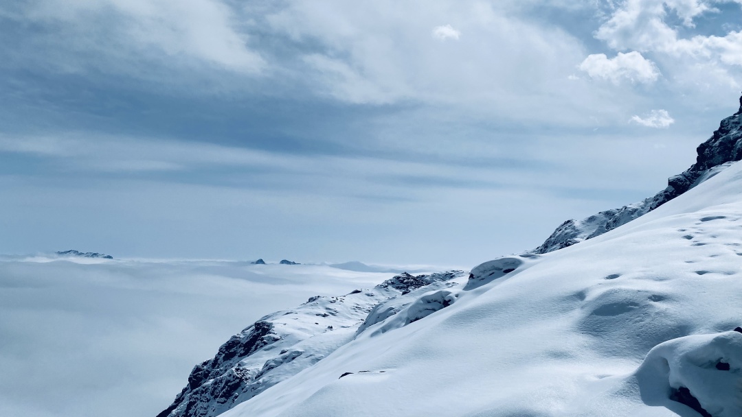 云雾遮挡下的雪山也慢慢露出真容