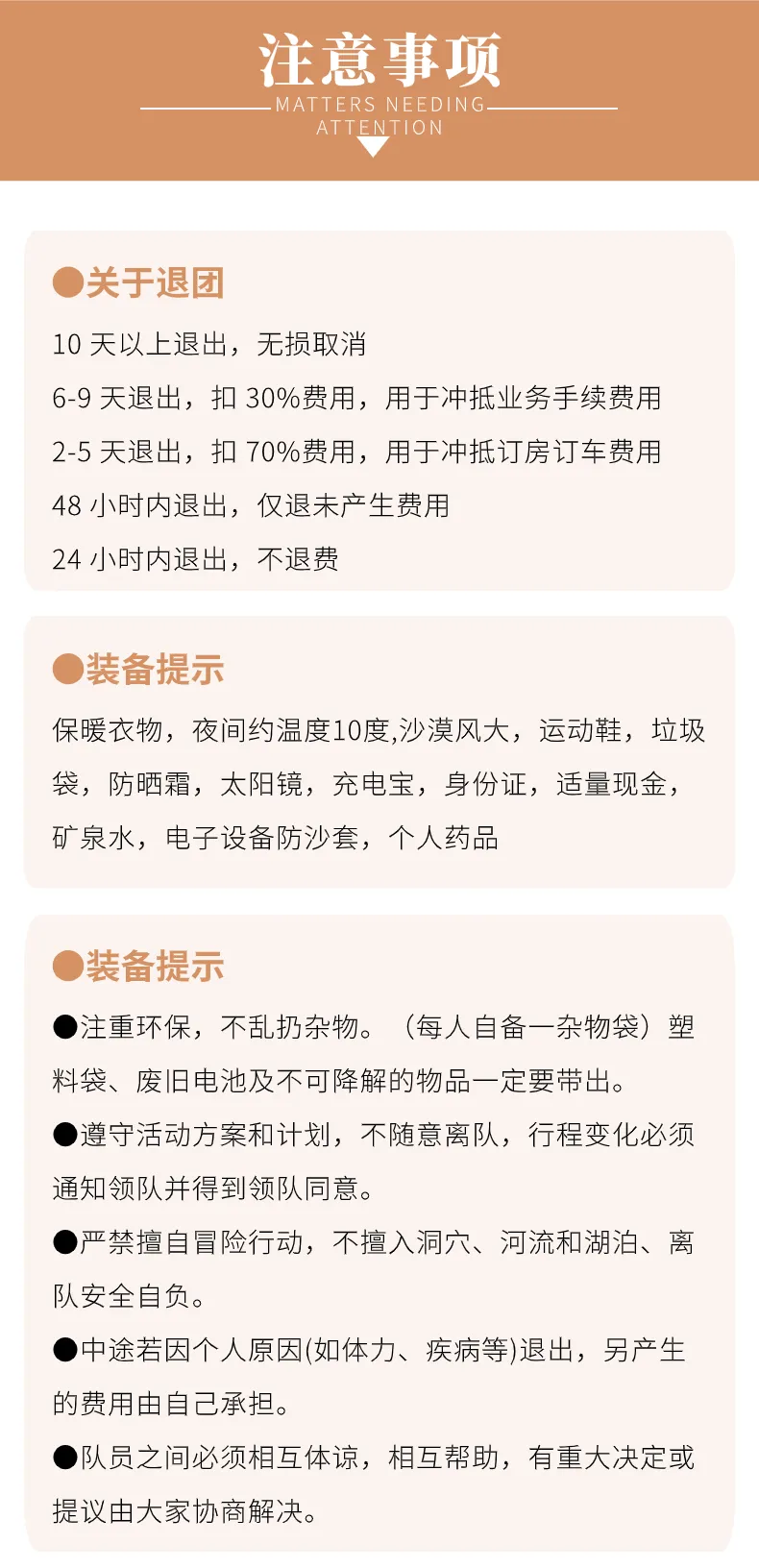 5.中途若因个人原因(如体力、疾病等)退出,另产生的费用由自己承担;