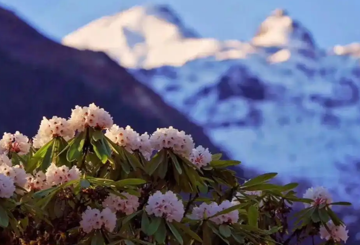 海螺沟具有丰富的原始森林资源,3月冰雪初融,木兰花开和杜鹃花相继盛开,这里既有海拔落差造就的立体春景,又有冰川温泉与花海的绝妙碰撞,随手一拍都是壁纸级大片。康定木兰(俗名光叶玉兰),为四川特有植物,主要分布在四川中部大渡河及青衣江海拔1400-2400米林间,三月四月的海螺沟是康定木兰的世界,迎来最佳观赏期,与雪山相映衬、点缀林海、美轮美奂。