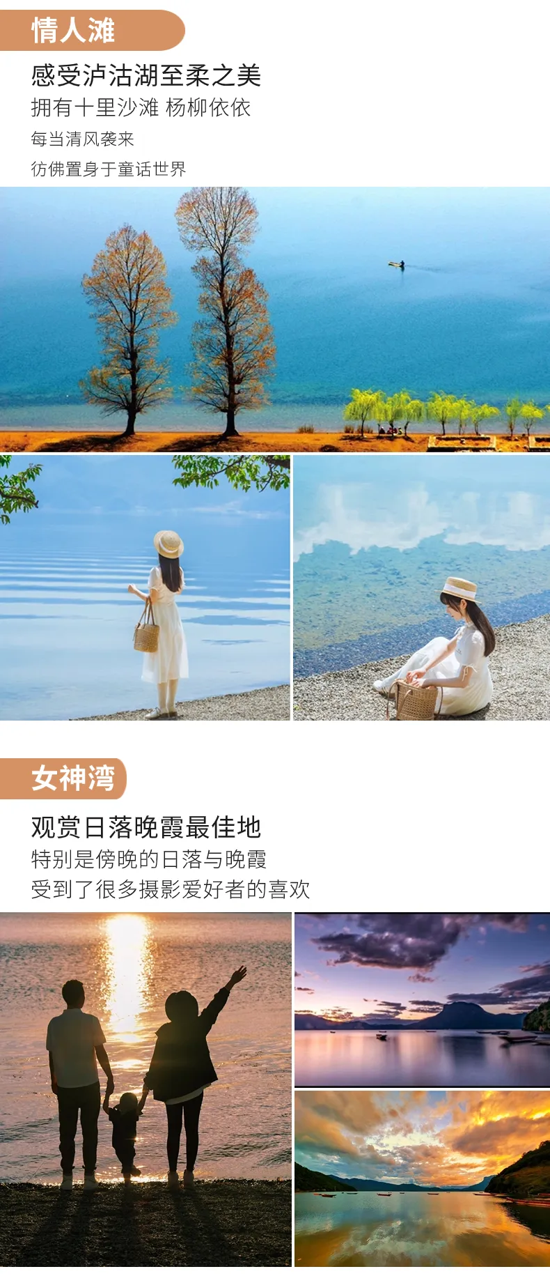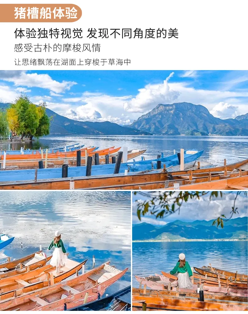 3、深度游览:赠送360°环湖全景游览,,免去寻找游玩方式的烦恼,领略泸沽湖的奇特风光。