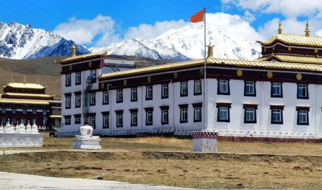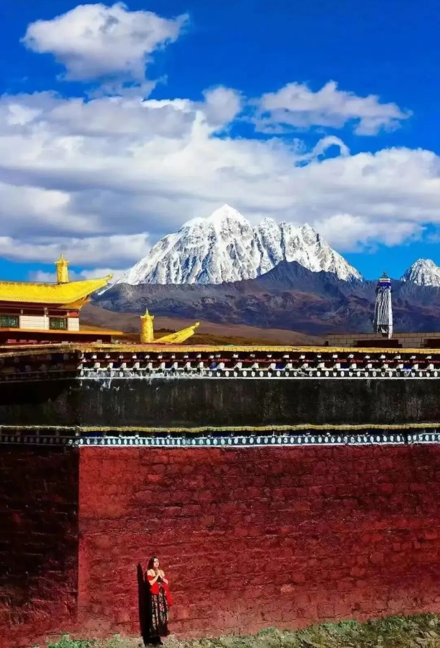 与藏式民居、远山雪景相融
