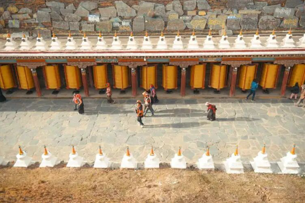 信徒们手持转经筒,沿着长廊缓缓行走