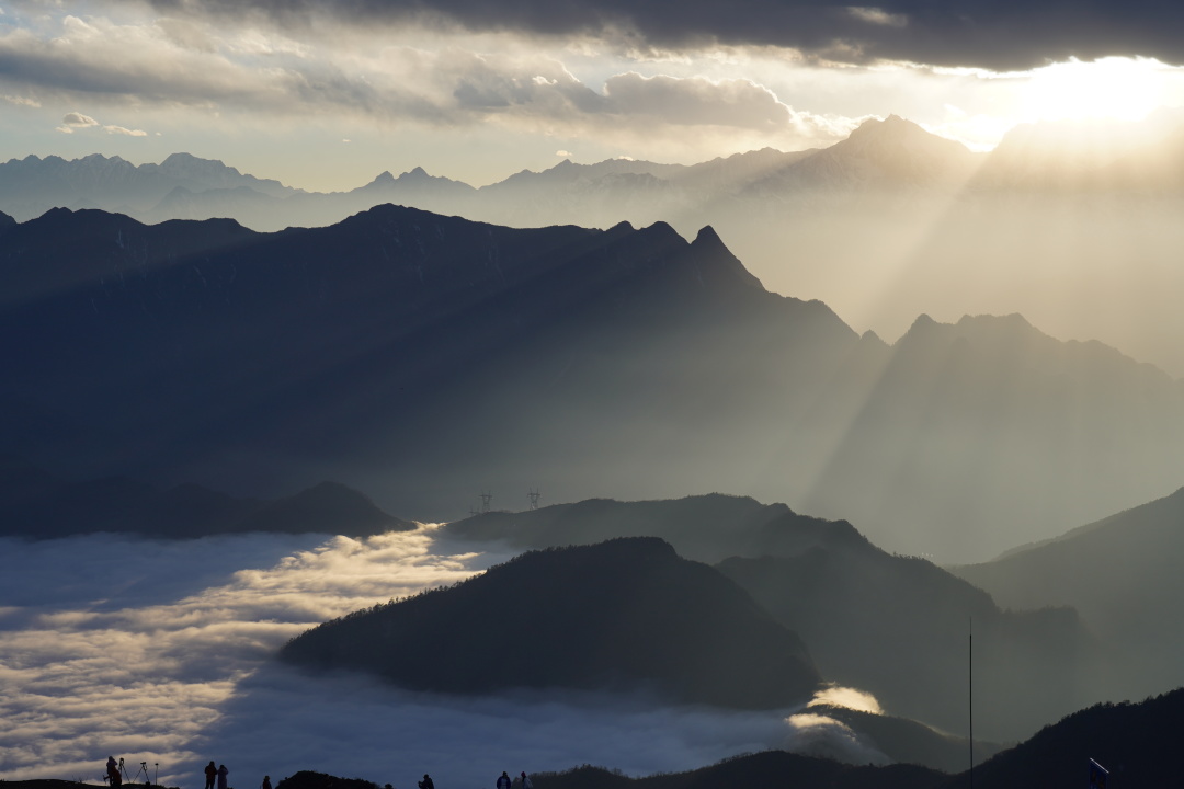 “蜀山之王”贡嘎雪山矗立于牛背山的正西最高点。虽然海拔不算太高,但牛背山的山顶可观云海、日出、夕阳、“佛光”、星轨等自然美景,还能远眺贡嘎、峨眉、瓦屋山、四姑娘山、夹金山等蜀中名山大川,被誉为“亚洲最大360度最美观景平台”,受到全国乃至全世界驴友、摄影爱好者的追捧。