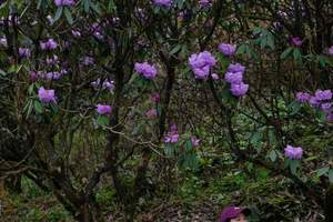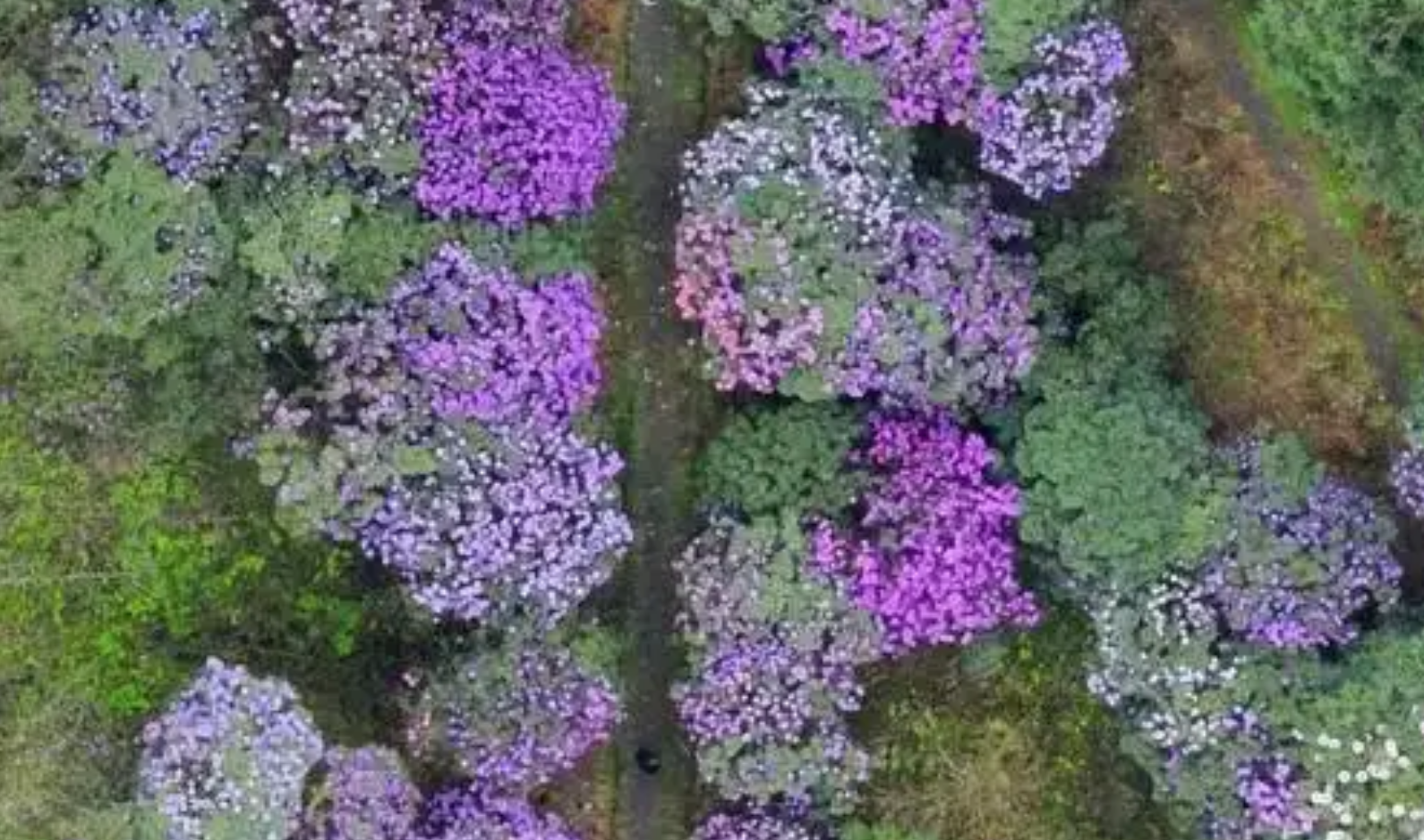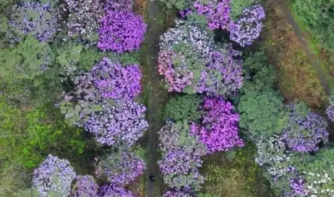 紫色、粉色、白色的杜鹃花在山野里绽放