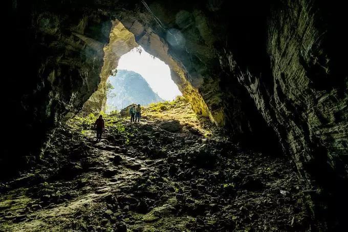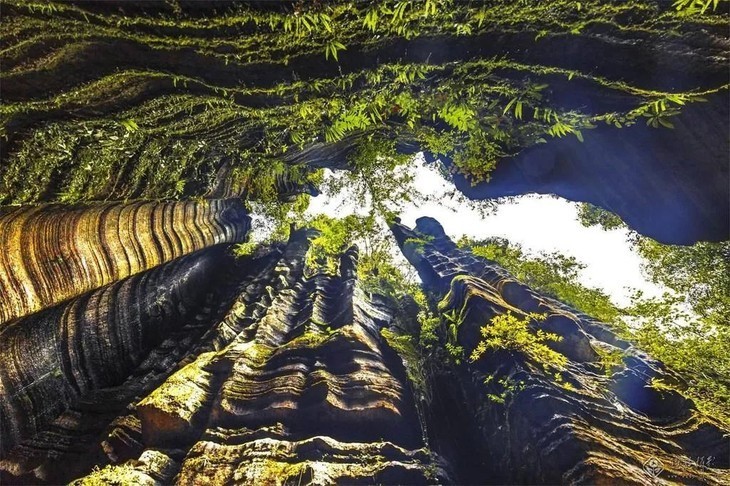 好汉坡的下方是典型的天坑地貌,四周百米绝壁,中间却是生机盎然的密林。初到谷底的人,如果没有人带路,一定会感到崩溃,似乎只有一个深不见底的洞穴是唯一的出路,其实绝壁之上还有一个叫一线天的地方可以带你逃出天生,这就是古河床的奇妙所在。